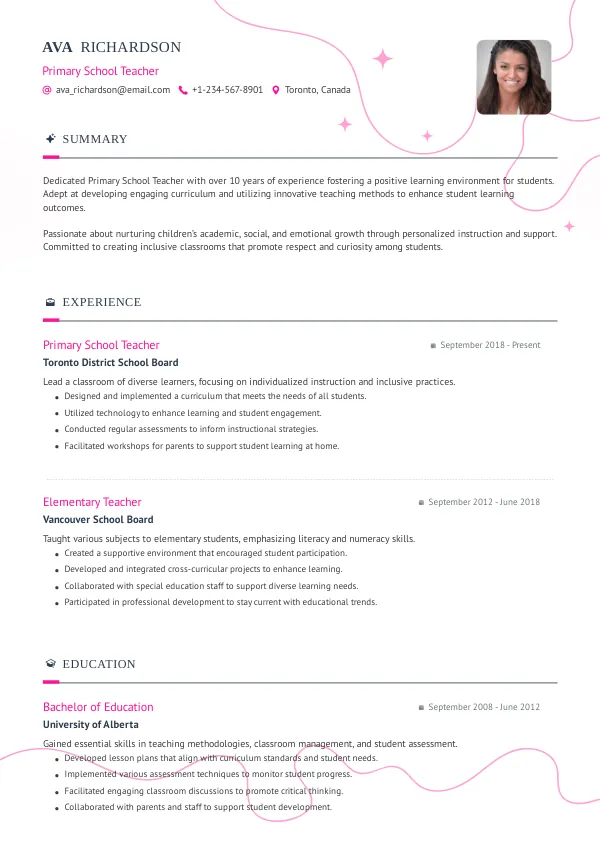 In today's competitive job market, having a standout resume is crucial for Primary School Teachers in Canada. A well-crafted resume showcases your skills, experiences, and achievements, making you an attractive candidate to potential employers.