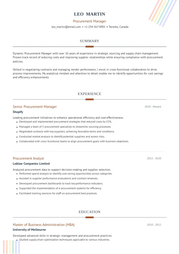 Resume Examples for Procurement Managers