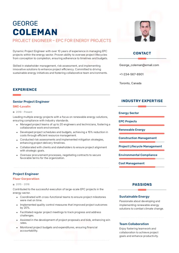The Canadian energy sector is poised for growth, leading to increased job stability for Project Engineers. Additionally, the demand for skilled workers may facilitate easier visa processes for international candidates. A well-crafted resume that highlights relevant experience and skills will be essential for navigating these opportunities, with TrueCV providing tailored support.