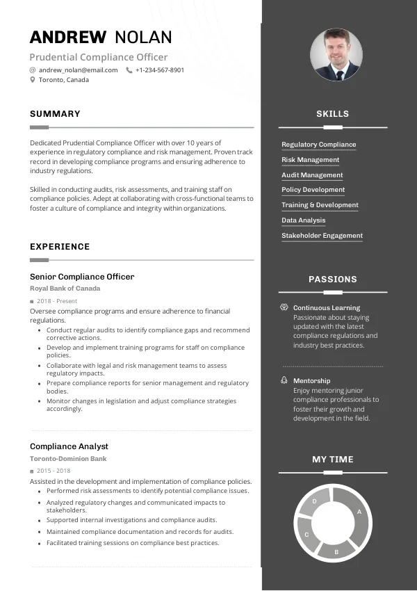 Major financial institutions such as Royal Bank of Canada, TD Bank, and Scotiabank will be actively seeking Prudential Compliance Officers in 2026. These employers will prioritize candidates who can demonstrate adaptability to new compliance technologies and frameworks. A TrueCV-enhanced resume will help candidates align their skills with these employers' needs.
