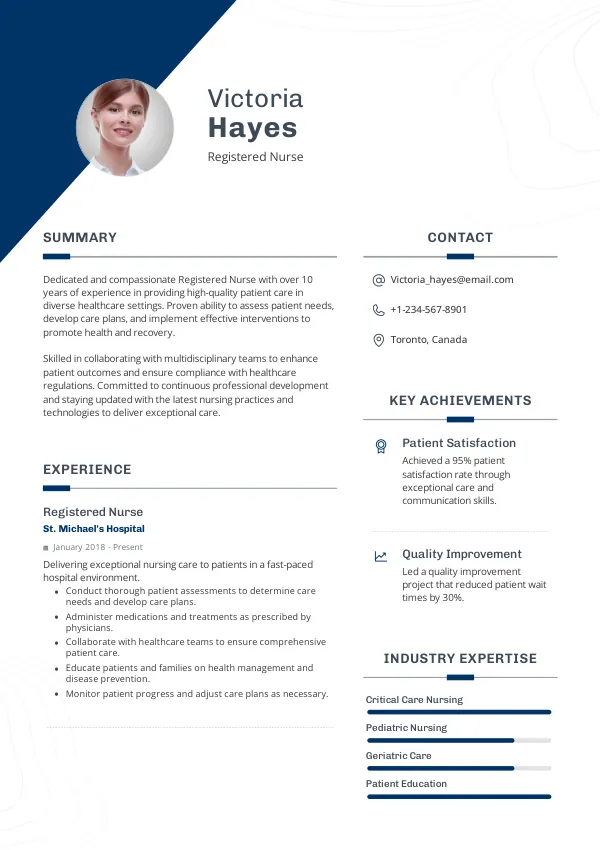 In 2026, the role of Registered Nurses in Canada is set to evolve significantly, driven by advancements in telehealth and AI-assisted patient care. Nurses will increasingly leverage technology to enhance patient outcomes, requiring a shift in skills and responsibilities. A TrueCV-optimized resume will help you highlight your adaptability and tech-savviness, aligning with these new expectations.
