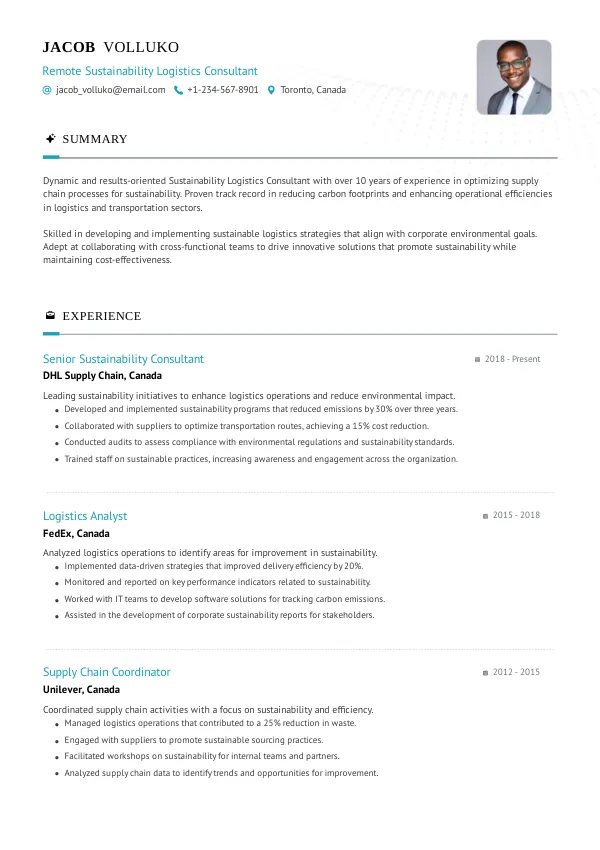 Resume Examples for Remote Sustainability Logistics Consultants