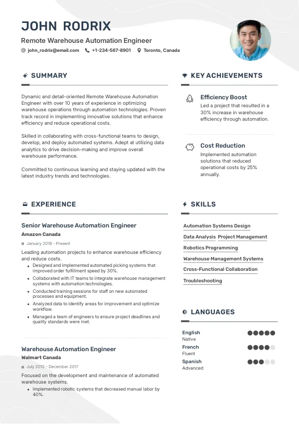 Resume Examples for Remote Warehouse Automation Engineers