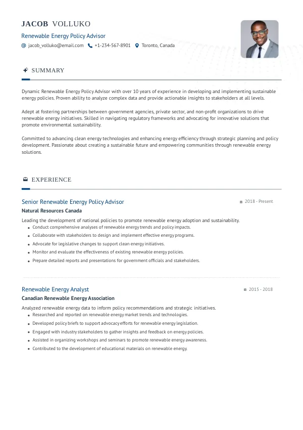 Build My Renewable Energy Policy Advisor ResumeEvolving Responsibilities of Renewable Energy Policy Advisors