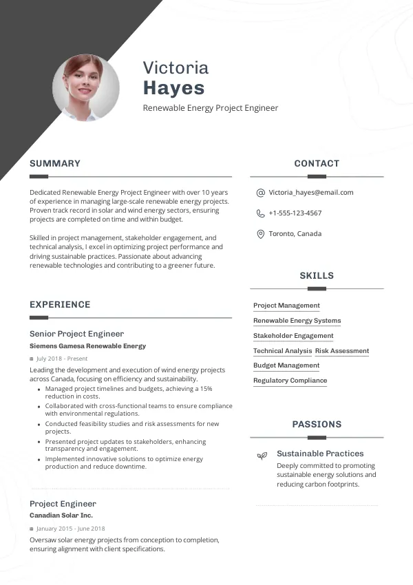 The demand for Renewable Energy Project Engineers is surging in 2026 due to increased investments in sustainable infrastructure and regulatory mandates aimed at reducing carbon emissions. The Canadian government is implementing stricter compliance norms that require expertise in renewable technologies, driving employers to seek skilled engineers. A TrueCV-optimized resume can effectively showcase your relevant experience and adaptability to these market changes.