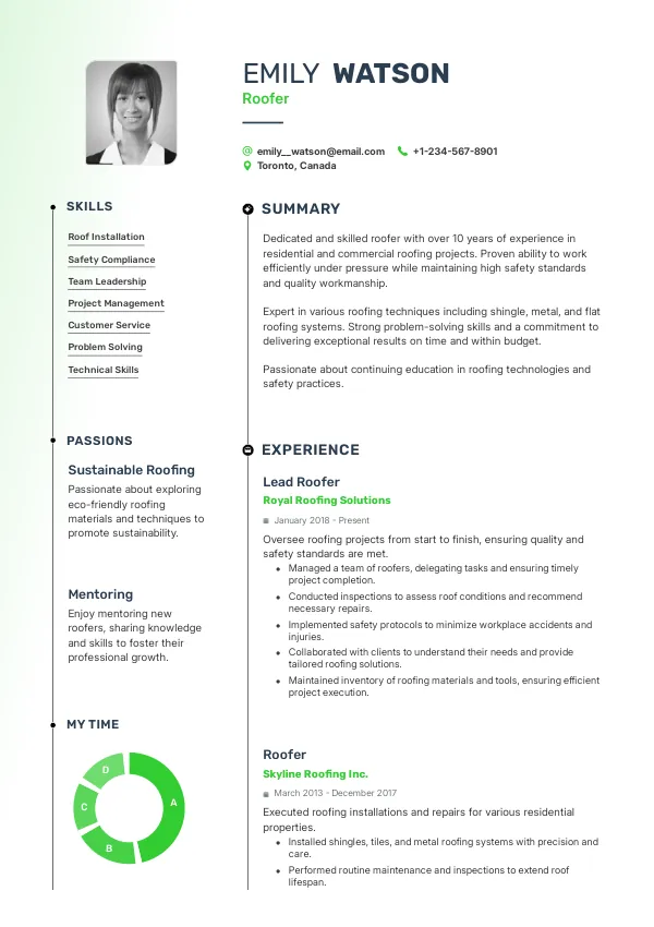 The demand for Roofers in Canada is surging in 2026 due to a combination of increased construction activity and a heightened focus on sustainable building practices. The implementation of new energy efficiency regulations and incentives for green roofing solutions is driving this demand. Employers are actively seeking skilled Roofers who can navigate these changes and implement eco-friendly solutions. A TrueCV-enhanced resume can effectively showcase a candidate's alignment with these emerging market trends, increasing their chances of securing a position.