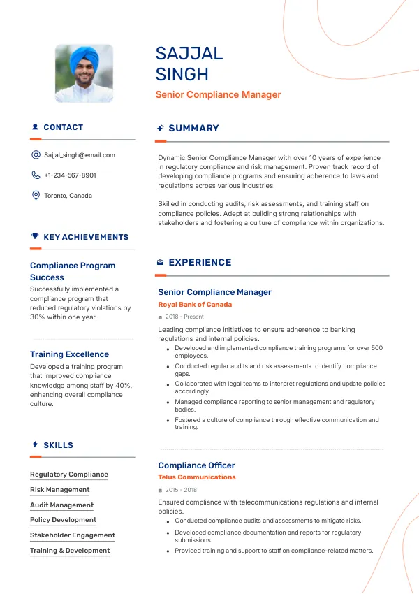 - Achievement: Developed and implemented a compliance framework that reduced regulatory breaches by 30%.