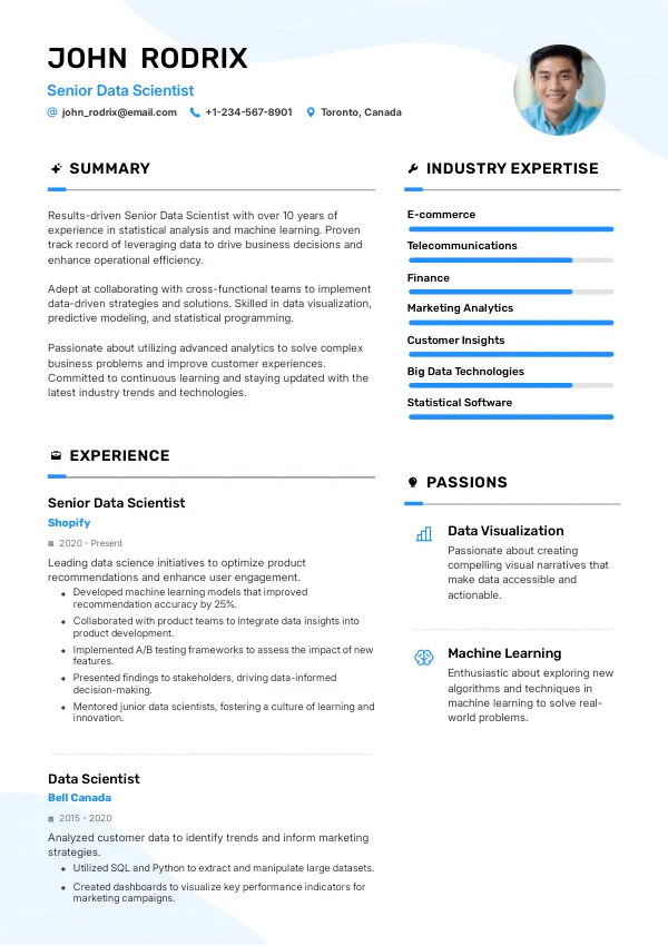Build My Senior Data Scientist – Statistics Canada ResumeEvolving Responsibilities of Senior Data Scientists
