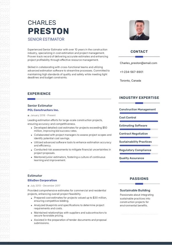 - Align your resume with the specific requirements of the Senior Estimator role using TrueCV.