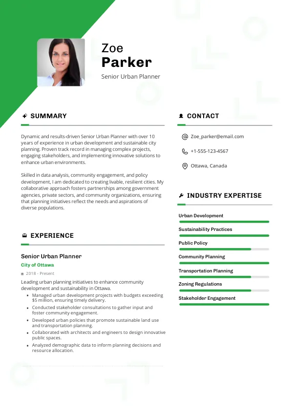Build My Senior Urban Planner – City of Ottawa ResumeResponsibilities of Senior Urban Planners in 2026