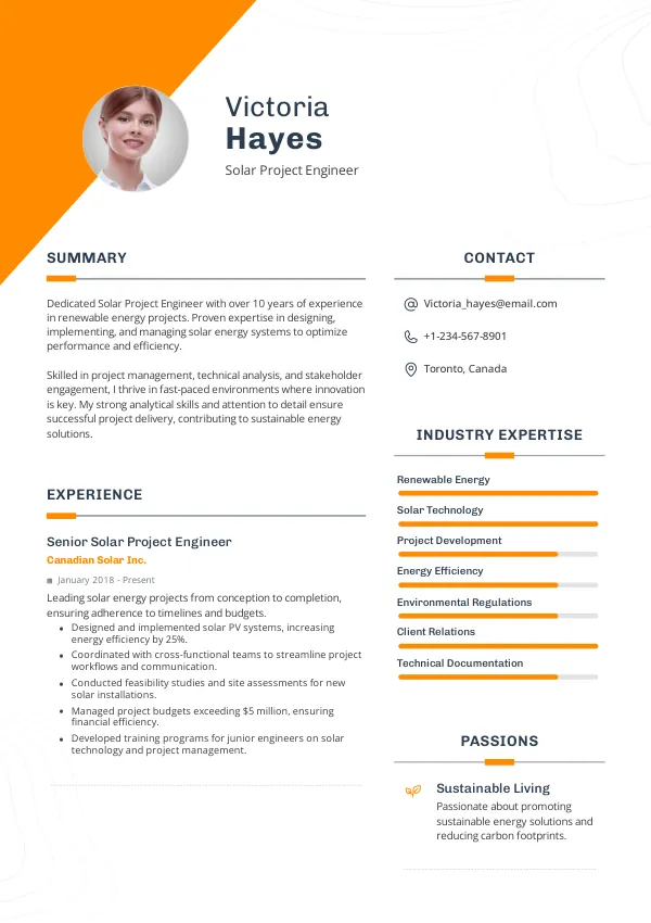 The demand for Solar Project Engineers in 2026 is surging due to Canada's commitment to achieving net-zero emissions by 2050. This regulatory push is driving investments in solar infrastructure, creating a robust job market. Furthermore, the adoption of advanced solar technologies, such as bifacial solar panels and energy storage systems, necessitates skilled engineers who can manage these complex projects. A TrueCV-optimized resume will ensure candidates effectively communicate their experience with these technologies, making them more attractive to employers.