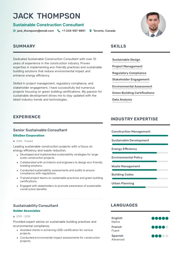 Build My Sustainable Construction Consultant ResumeEvolving Responsibilities of Sustainable Construction Consultants