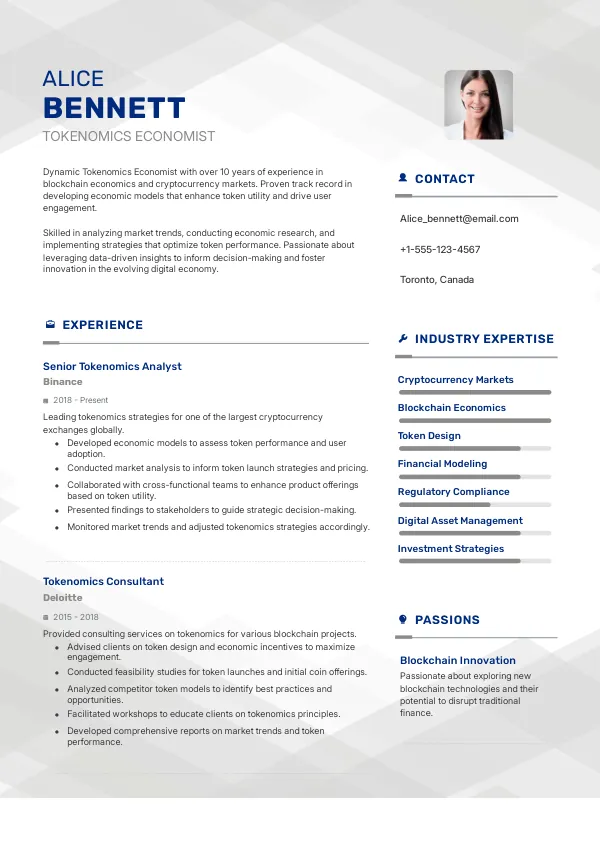 Resume Examples for Tokenomics Economists