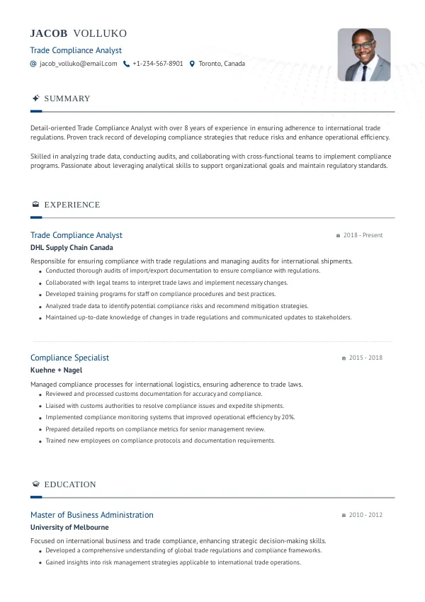 Craft a standout resume tailored for Trade Compliance Analyst roles in 2026.