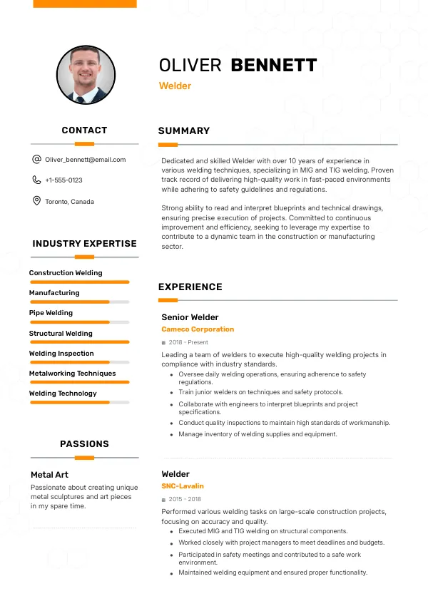 Get a professional Welder resume tailored to your skills and Canada’s hiring trends.
